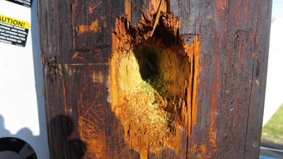 Polywater® UPR™ Pole Repair makes repairing single or multiple holes caused by woodpeckers on wood utility poles easy. The two-part formula is mixed in the nozzle. The product is easily injected into the hole through the 8” nozzle. A partially used cartridge can be resealed and used again by attaching a new nozzle. UPR™ is packaged in kit form. Everything needed to repair damage to wood poles caused by woodpeckers is included. |
